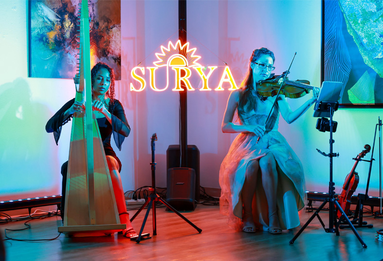 Surya is not just another music event in Atlanta; it’s an experience that transcends the ordinary. Our music represents the sun, enlightenment, and coming out of darkness – with a special focus on storytelling and a true east-meets-west fusion. Surya’s music is a vibrant exploration of cultural crossroads, where Eastern and Western influences blend harmoniously, creating a sound that is both familiar and exotic.