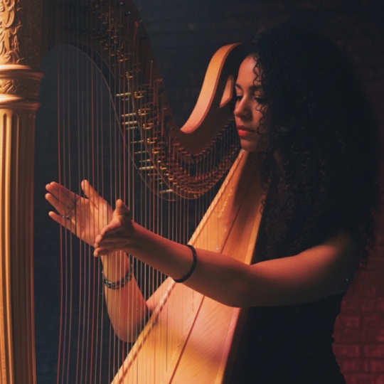 Kim’s harp weaves cinematic and bold textures, creating a lush, magical backdrop that elevates every performance.