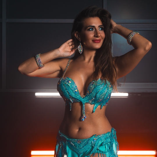 Award-winning dancer, Maria fuses bellydance, flamenco, and Indian styles. Bringing mesmerizing movement and energy to every Surya show.